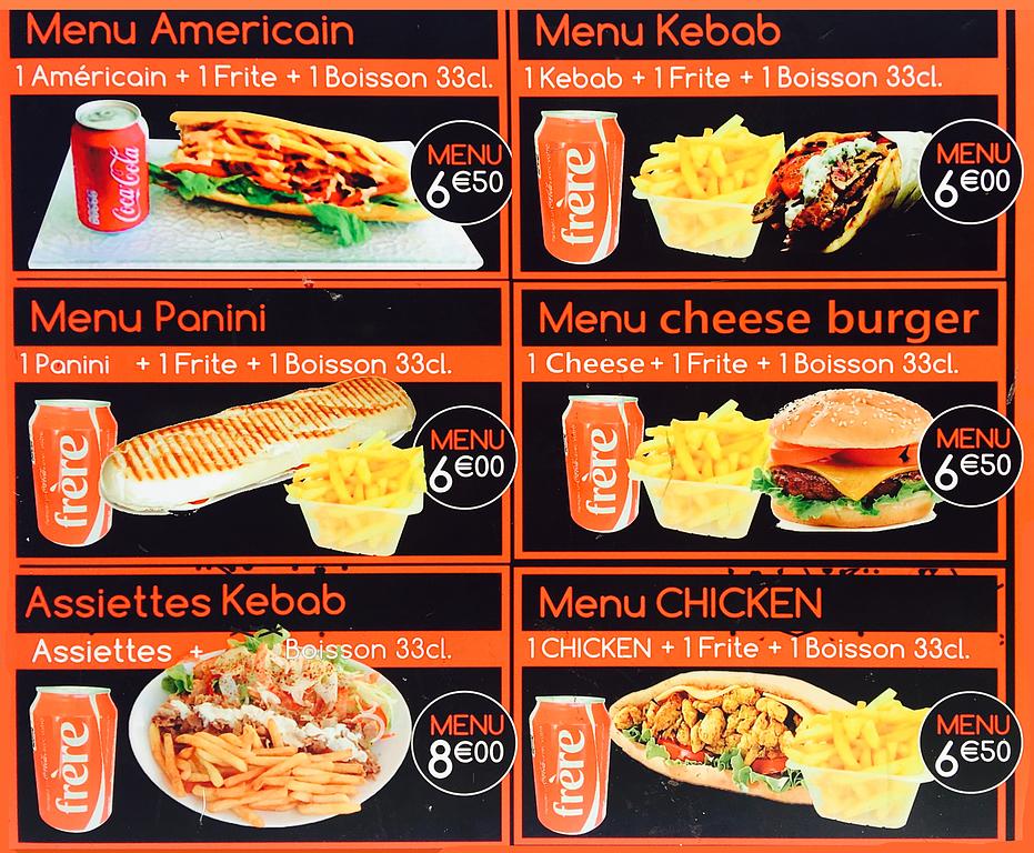 Musk : restauration rapide hallal à Narbonne Votre restaurant Muskest ouvert tous les jours de 11 h à 15 h, puis, de 18 h à minuit. Mangez sur place ou commandez à emporter pour de délicieuses spécialités indiennes. Nous vous proposons également des menus de restauration rapide avec frites et boissons. Spécialité indiennes, sandwichs, tacos, panini, Américain, hamburger... Toute la carte est disponible sur place ou à emporter et toutes nos viandes sont hallal. NOS ASSIETTES Poulet Tandoori 7,00 € Poulet Tikka 9,00 € Kebab 7,00 € Kefta 8,00 € Falafel 7,00 € Steak 8,00 € Royal 10,00 € Chicken 8,00...